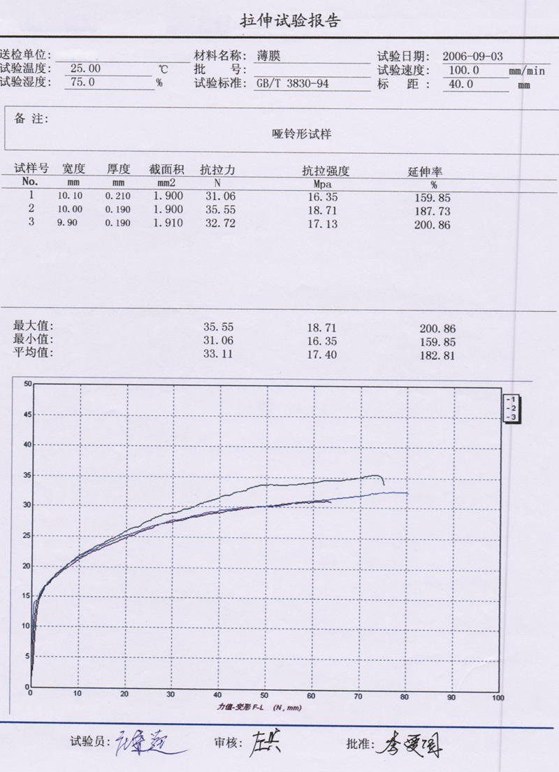 試樣參數:標(biāo)距/跨距40、厚度:0.19