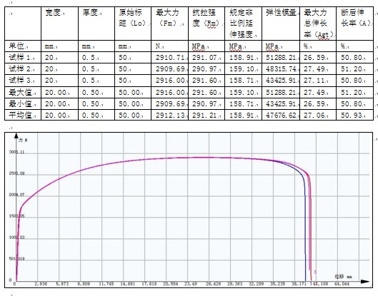 備 注(zhù):通過茄子视频泰捷拉力試驗機測試,報告包含如下項目:寬度\厚度\原始標(biāo)距(Lo)\最(zuì)大(dà)力(Fm)\抗拉強度(Rm)\規定非比例(lì)延伸強度\彈性模量\最大力總伸(shēn)長率(Agt)\斷後伸長率(A)