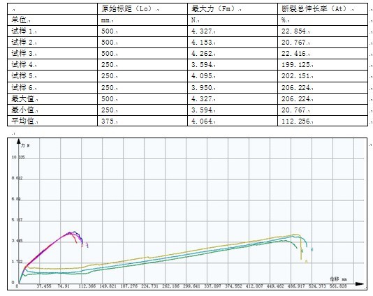 滌綸絲拉力試驗機試驗數據及曲線: