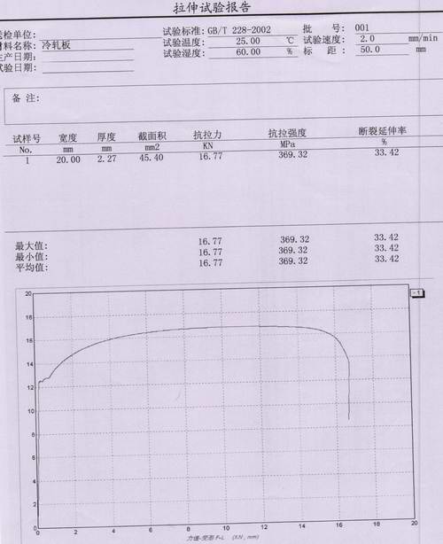 冷軋板拉力試驗報告內容:①抗拉力 ②抗拉(lā)強度 ③伸長率