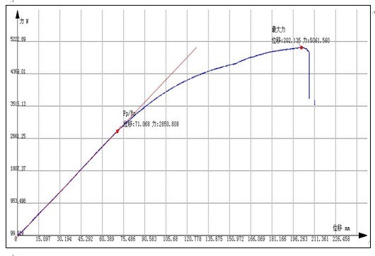 試樣(yàng)斷裂(liè)在小金(jīn)屬管,焊點處正常(cháng)。本次試(shì)驗使用10t楔形拉伸夾具,下端使用柔性帶固(gù)定,位移並非試樣變形(xíng),本試驗報告僅供參考。 外(wài)徑 壁厚 原始橫截麵積(So) 最大力(Fm) 抗拉強度(Rm) Rp0.2